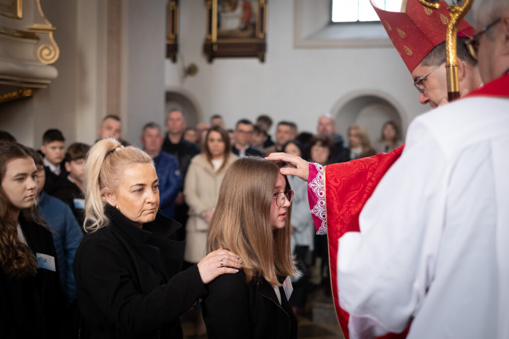 Sakrament bierzmowania – 18.03.2026 W trakcie tegorocznych rekolekcji wielkanocnych młodzież klas VII i VIII z terenu naszej parafii przyjęła sakrament bierzmowania z rąk Jego Ekscelencji ks. bp. Wojciecha Osiala. fot. Filip Weichert